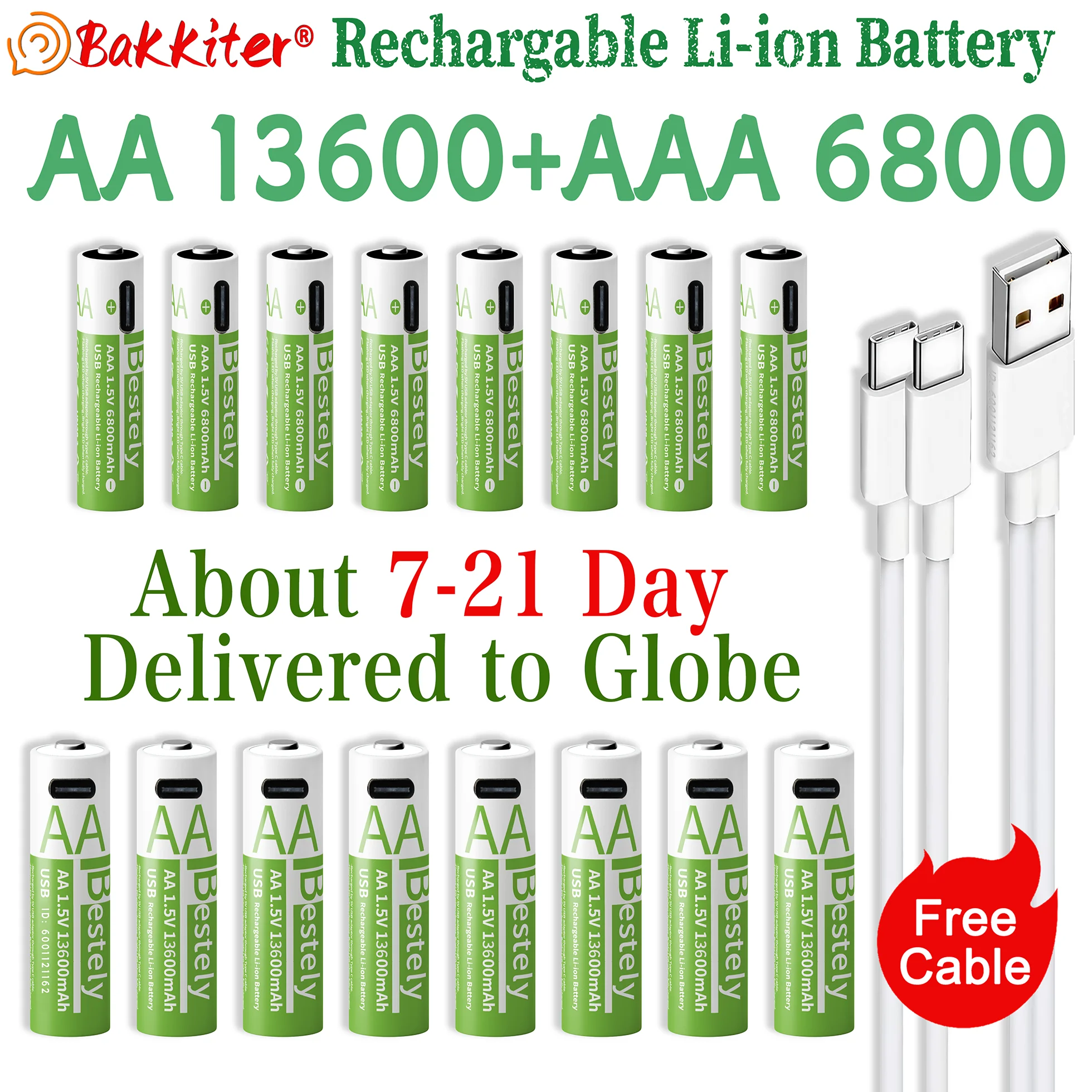 بطاريات ليثيوم أيون، بطاريات قابلة لإعادة الشحن، بطاريات USB-C، بطاريات AA، بطاريات AAA، بطاريات طويلة العمر، بطاريات BaKKiter، شحن سريع، طاقة مستدامة، بطاريات 1.5 فولت، بطاريات حديثة، بطاريات ذكية، بطاريات للأجهزة الإلكترونية، بطاريات صديقة للبيئة.