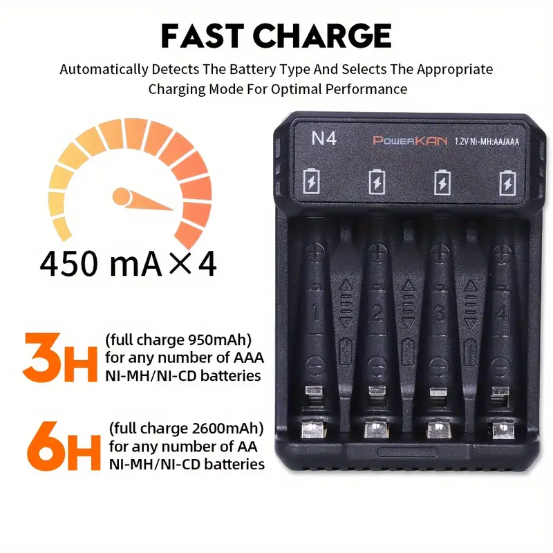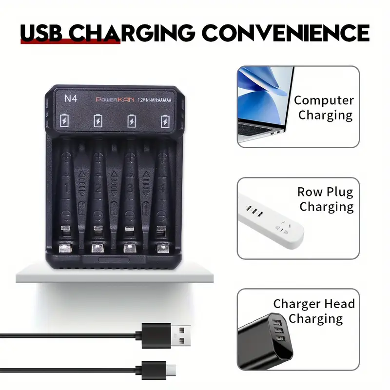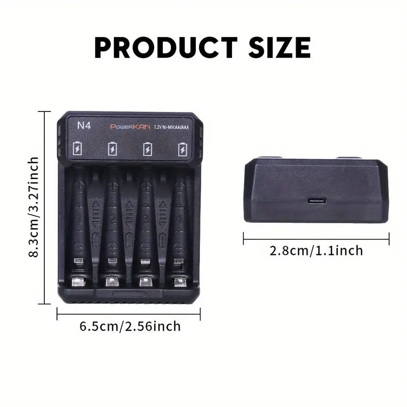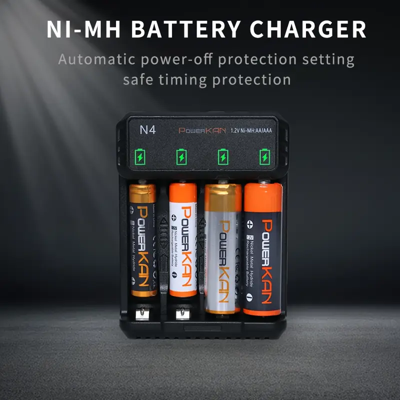 شاحن بطاريات نيومح – POWERKAN N4 | 1.2 فولت USB نوع C | مؤشرات LED ذكية | ميزات أمان لإيقاف التشغيل التلقائي | وضع الشحن الثلاثي | تصميم مضغوط للاستخدام المنزلي، POWERKAN