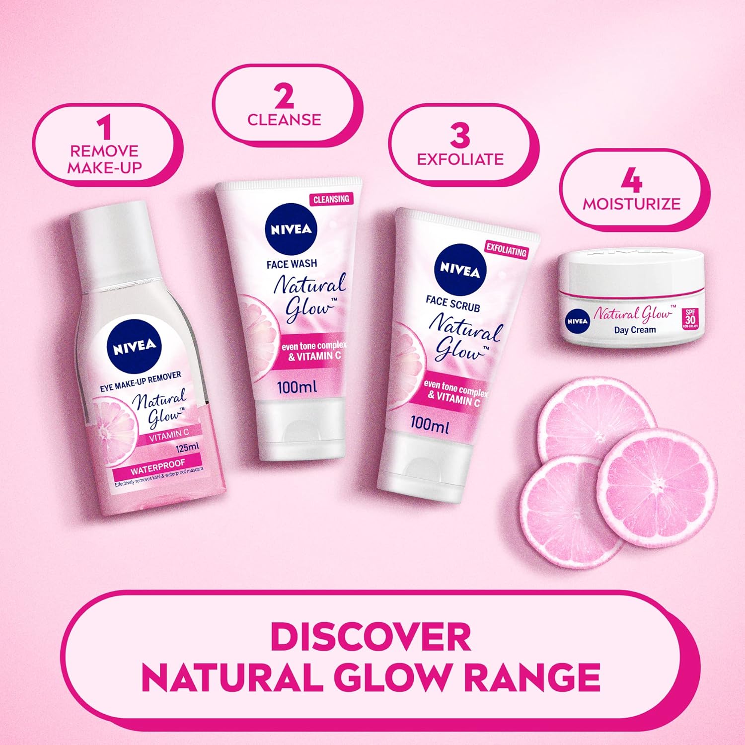 فلا تبحثي بعيداً. الحل بين يديكِ مع غسول الوجه نيفيا Natural Glow.
