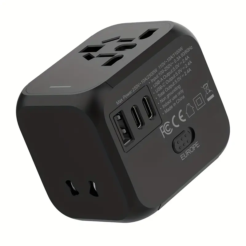 محول السفر، شاحن متعدد الاستخدام، محول كهربائي 2500 واط، محول مقابس السفر، universal travel adapter، universal plug، international power adapter، travel charger، محول عالمي، أدوات السفر الذكية، شاحن متعدد الأجهزة