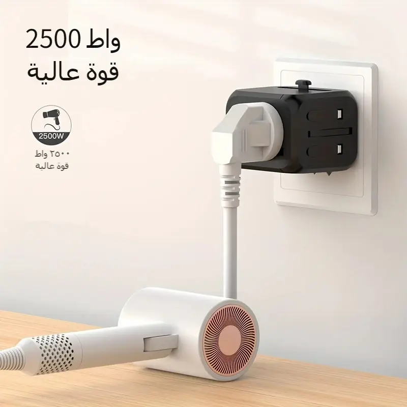 • الطاقة القصوى: 2500 واط – مثالي حتى للأجهزة الكهربائية ذات الحمل العالي (مثل مجفف الشعر أو مكواة السفر).